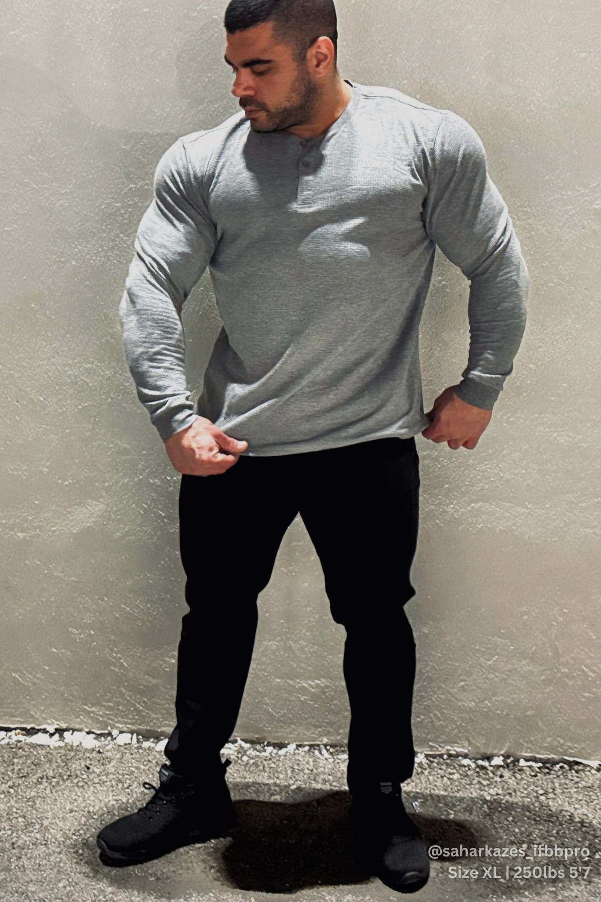 Waffle Knit Henley Long Sleeve T-Shirt - Dark Gray XXL / Gray