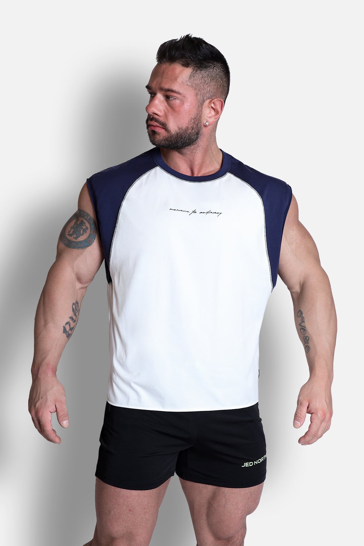 Raglan Sleeveless Tank Top - White & Navy